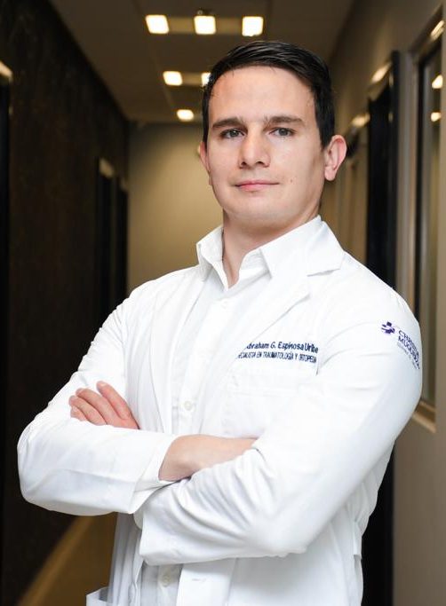 Soy el Dr. Abraham Espinosa Uribe, Traumatólogo y Ortopedista con Alta Especialidad en Cirugía Articular de Pie y Tobillo. Cuento con más de 9 años de experiencia y más de 955 procedimientos realizados, lo que me permite brindarte una atención precisa, segura y respaldada por técnicas innovadoras y eficaces enfocadas en tu recuperación.